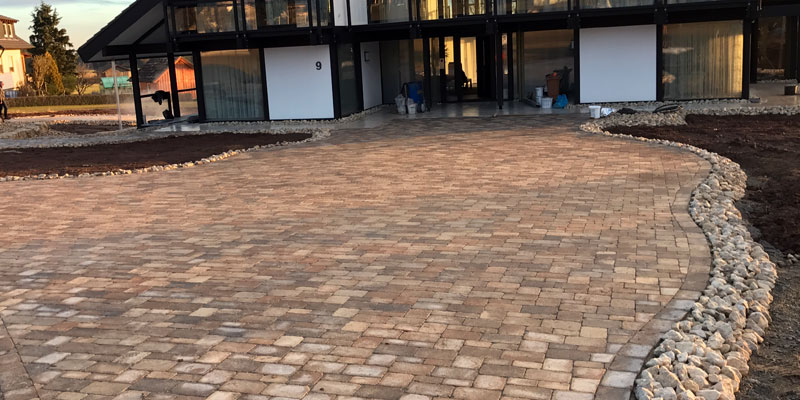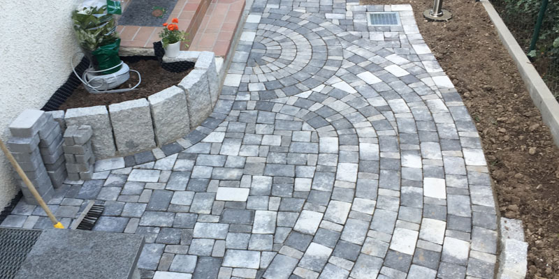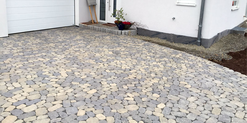 Graues Pflaster für Parkplatz und Einfahrt – Fliesen Kugel