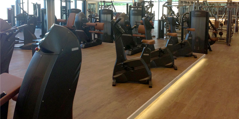 Fitnessstudio mit Boden in Holzoptik – Fliesen Kugel